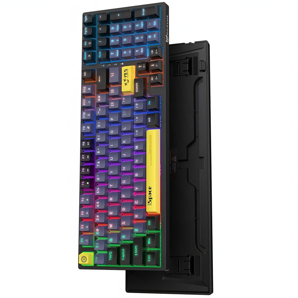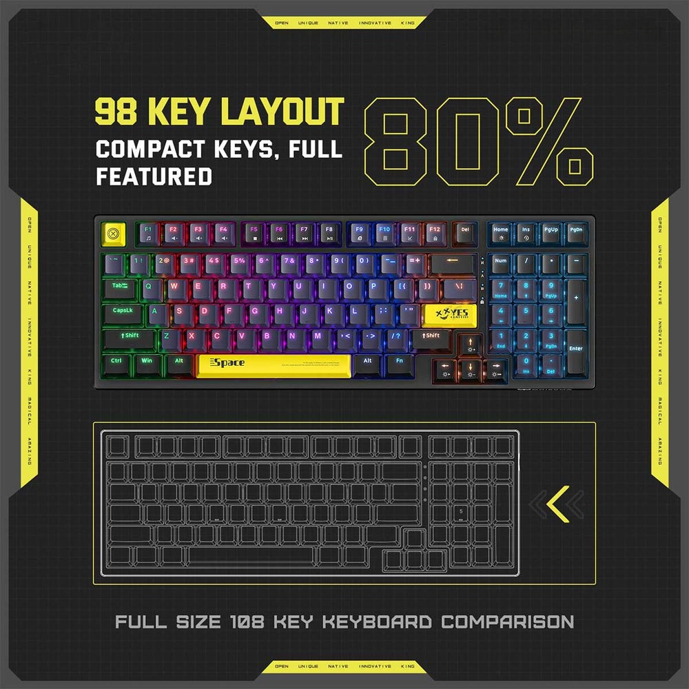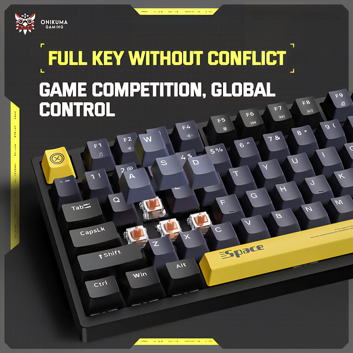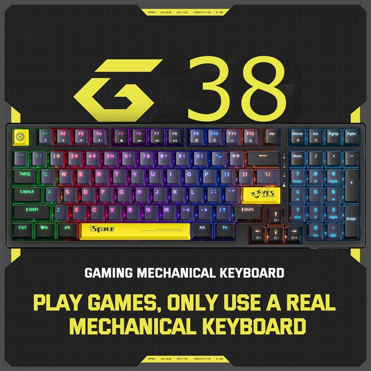 کیبورد ONIKUMA G38 با طراحی 80% و 98 کلید، ترکیبی هوشمندانه از کارایی و عملکرد است. این کیبورد دارای کلیدهای استاندارد، از جمله کلیدهای F1-F12، کلیدهای جهت، و صفحه کلید عددی است.