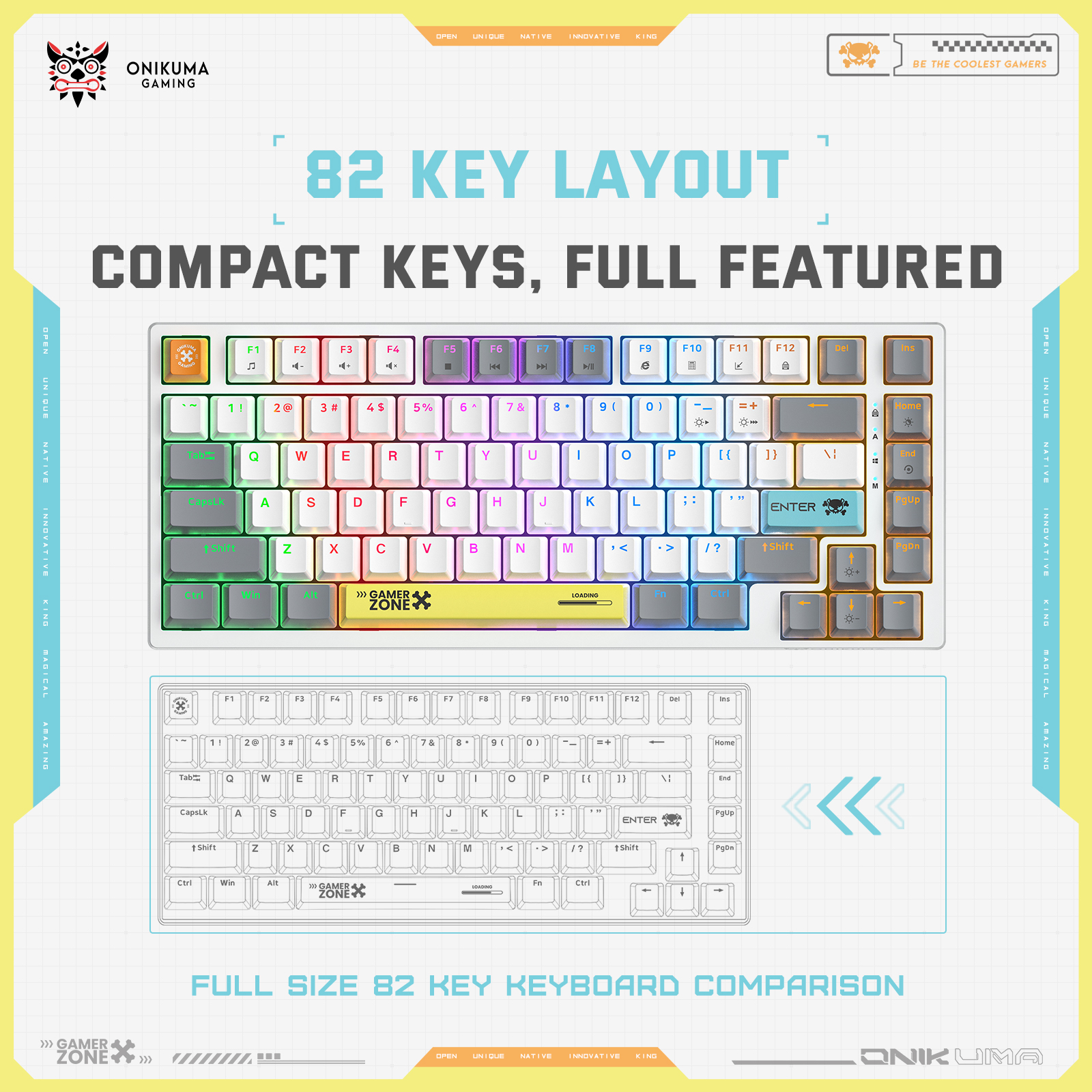 کیبورد ONIKUMA G58 با طراحی 82 کلید، ترکیبی هوشمندانه از کارایی و فضای محدود ارائه میدهد. این طراحی ضمن حفظ کلیدهای ضروری، فضای بیشتری را برای حرکت موس فراهم میکند.
