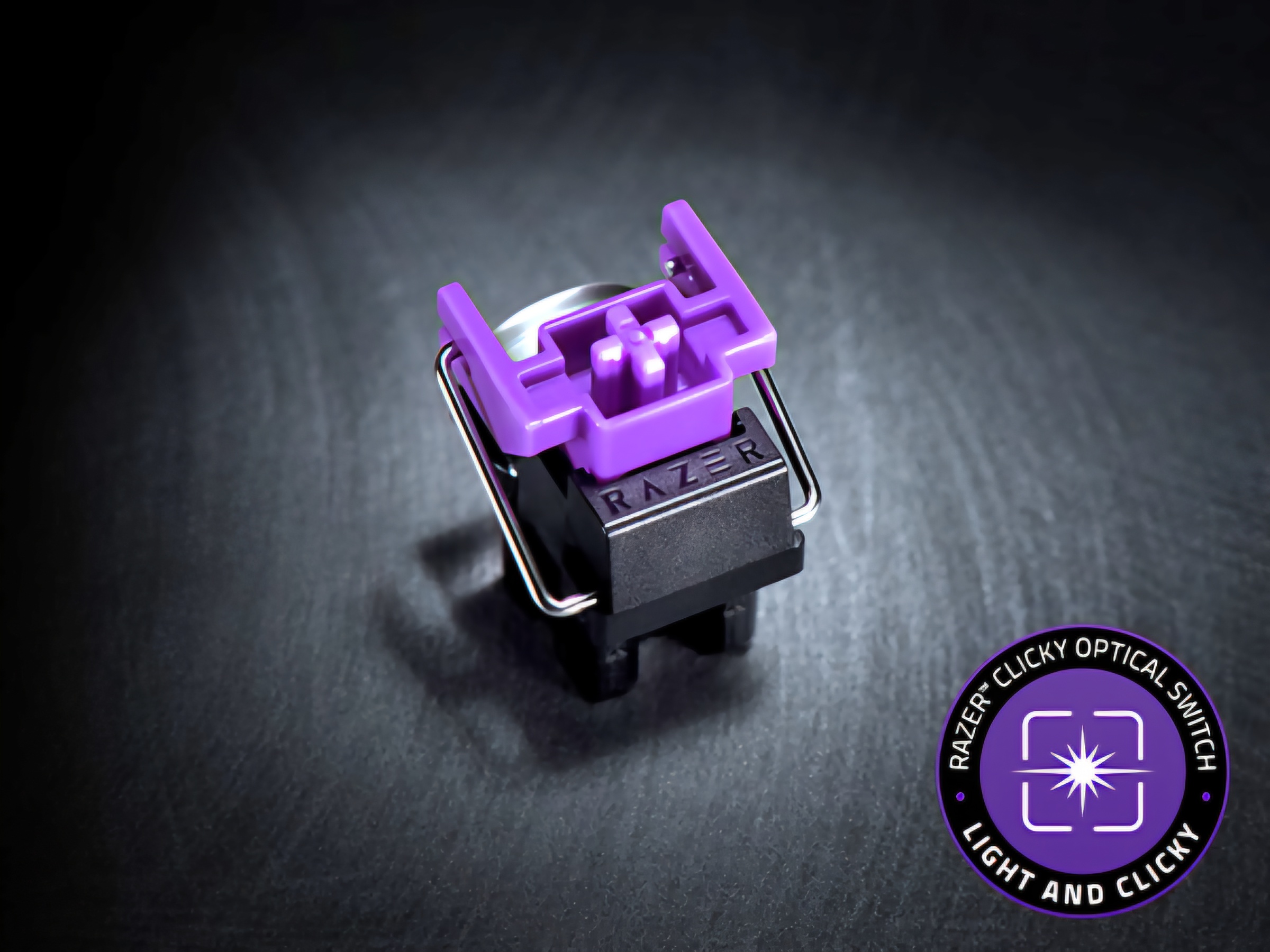 سوئیچ اپتیکال بنفش ریزر که با نام RAZER CLICKY OPTICAL SWITCH شناخته میشود، دارای دو ویژگی اصلی است: صدایی شبیه کلیک موس و لرزش بسیار کم هنگام فشردن. این سوئیچ زمان واکنش شما را بهینه کرده و تجربهٔ دقیقتری در بازیهای چندنفره ارائه میدهد.