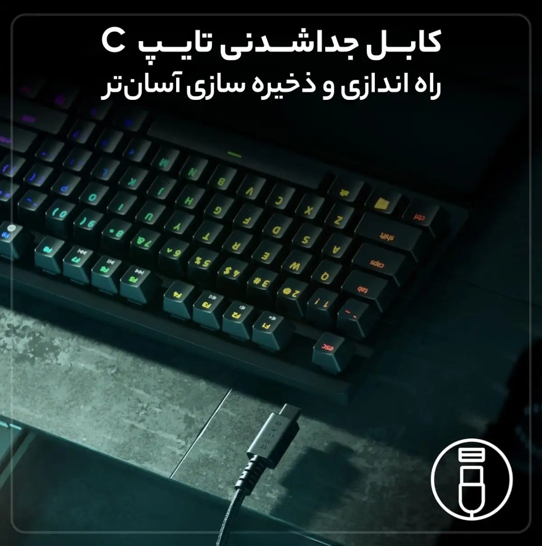 کیبورد گیمینگ RAZER HUNTSMAN V2 TENKEYLESS تمامی نیازهای یک گیمر حرفه ای را در یک طراحی TKL یا TENKEYLESS زیبا و کارآمد برآورده میکند. این کیبورد با 87 کلید، سوییچهای اپتیکال بنفش و اتصال باسیم با کمترین تأخیر، دقت و سرعت لازم برای برتری در هر بازی را فراهم میآورد. اگر به دنبال کیبوردی لوکس، شیک و قدرتمند با طراحی ارگونومیک هستید، HUNTSMAN V2 TKL بدون شک انتخاب ایدهآل شما خواهد بود.
