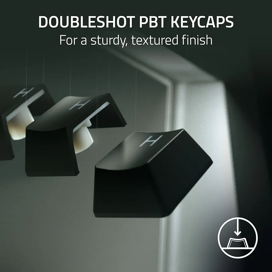 کلیدهای کیبورد HUNTSMAN V2 TKL از نوع DOUBLESHOT PBT است که بسیار با ظرافت و با کیفیت ساخته شدهاند که دوام و طول عمر بالایی دارند. این کلیدها در برابر سایش و رنگ پریدگی مقاوم هستند و میتوانند سالها بدون مشکل به شما خدمت کنند.