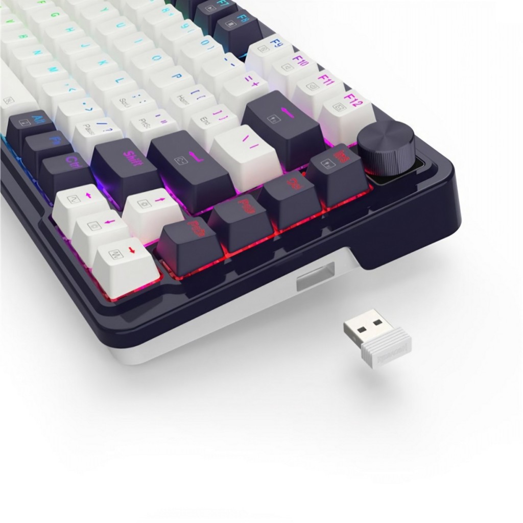 Redragon K673 Pro با طراحی 81 کلید و چیدمان بهینه، فضای بیشتری را روی میز شما آزاد میکند و در عین حال دسترسی آسان به تمام کلیدهای ضروری را فراهم میکند. این طراحی به ویژه برای گیمرهایی که به فضای بیشتر برای حرکت موس خود نیاز دارند، بسیار مهم است. علاوه بر این، کلیدهای تابع در بالای کیبورد قرار گرفتهاند و دیگر نیازی به استفاده از کلید FN برای دسترسی به آنها نیست.