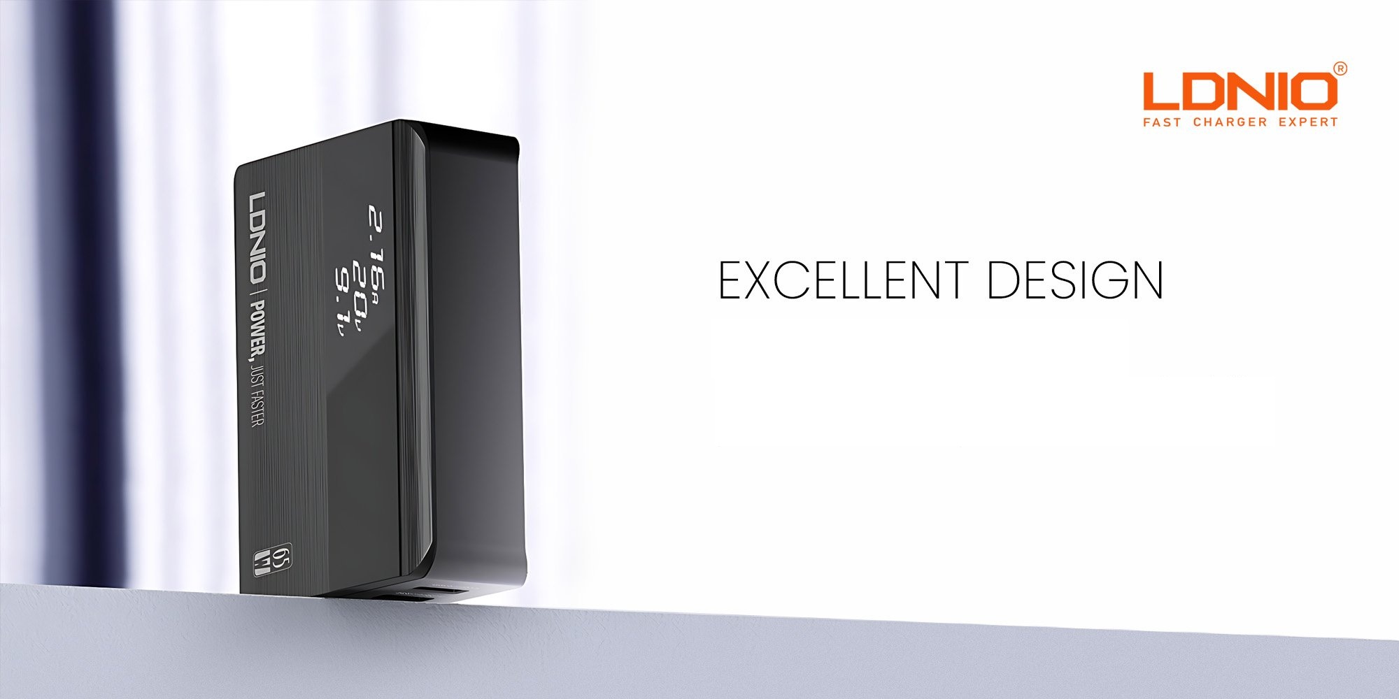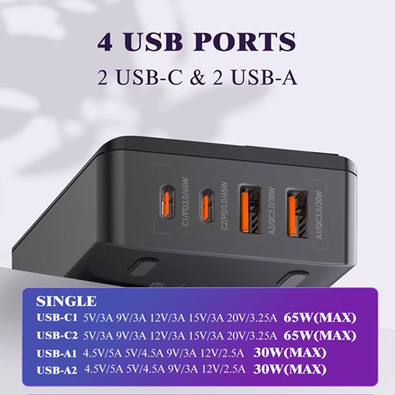 این شارژر به شکل رومیزی طراحی شده و به عنوان هاب شارژر مورد استفاده قرار می گیرد. این شارژر از مواد نسوز ساخته شده و روی بدنه آن یک صفحه نمایش دیجیتالی قرار دارد و میزان ولتاژ و شدت جریان را نمایش می دهد. این محصول همچنین دارای وزن و ابعاد مناسبی است. از دیگر مزیت های مهم این شارژر میتوان به توانایی شارژ لپتاپ اشاره کرد. درواقع به واسطه ی پورت تایپ سی ,و توان 65 واتی ، میتوان شارژ لپ تاپ ، تلفن همراه و تبلت را انجام داد.