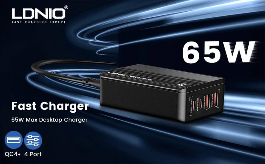 ما در طول روز با کابلهای متفاوتی سر و کار داریم که از نظر تعداد نیز فراواناند. بعضی اوقات برای استفاده از آنها پورت کافی نداریم و دچار مشکل میشویم. اینجاست که داشتن یک شارژر دارای چندین پورت به کمک ما می آید. شارژر رومیزی الدینیو مدل A4808Q که به تازگی توسط کمپانی الدینیو وارد بازار شده است در این زمینه بسیار کارآمد است. این شارژر با حداکثر توان خروجی 65 وات و داشتن 4 پورت خروجی متشکل از 2 عدد USB-A و 2 عدد USB-C می تواند انتخاب خوبی برای میز کار شما باشد.