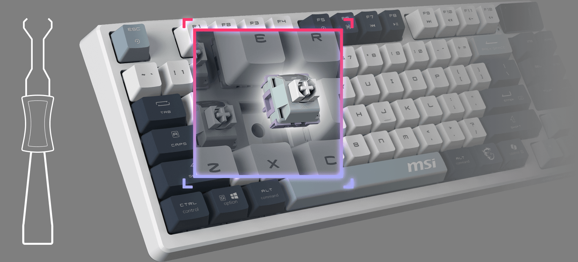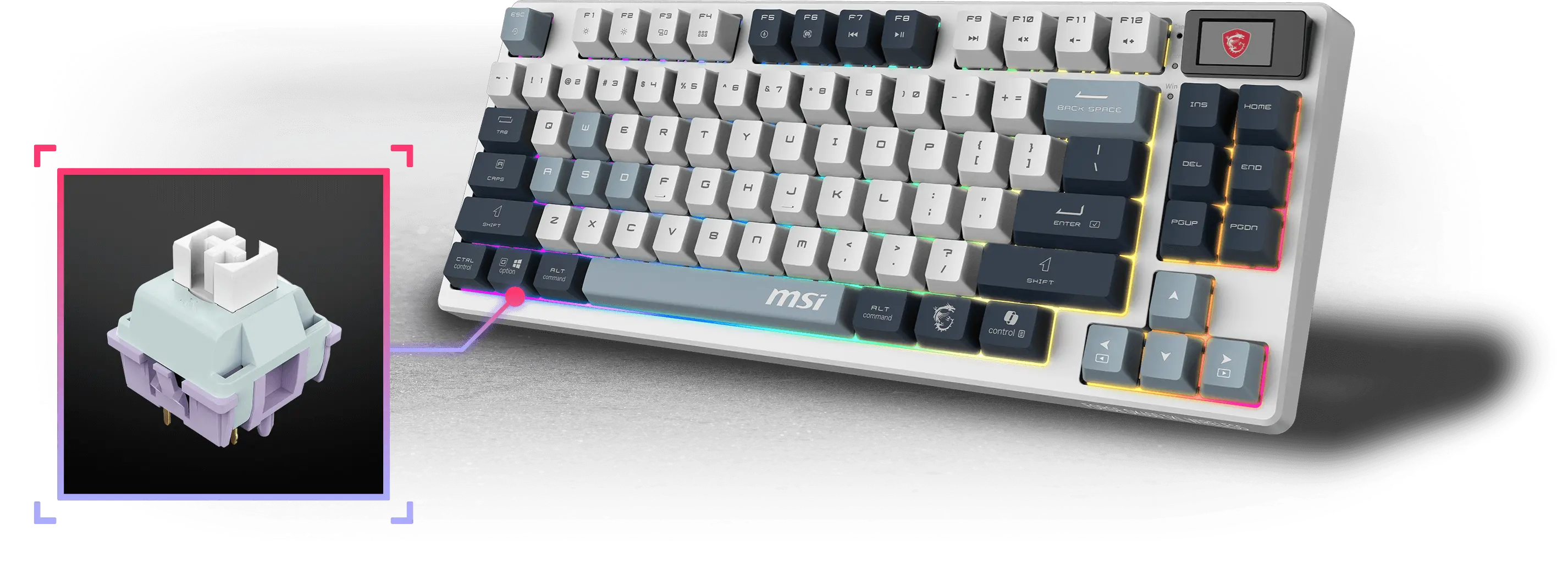 کیبورد MSI FORGE GK600 TKL SKY با سوکتهای هاتسواپ جدید، امکان تعویض سوئیچها را فراهم میکند. این سوکتها به شما اجازه میدهند که سوئیچهای کیبورد را به راحتی و بدون نیاز به لحیمکاری تعویض کنید. این ویژگی به شما امکان میدهد که تجربه تایپ و بازی خود را شخصیسازی کنید و از انعطافپذیری بیشتری برخوردار شوید.