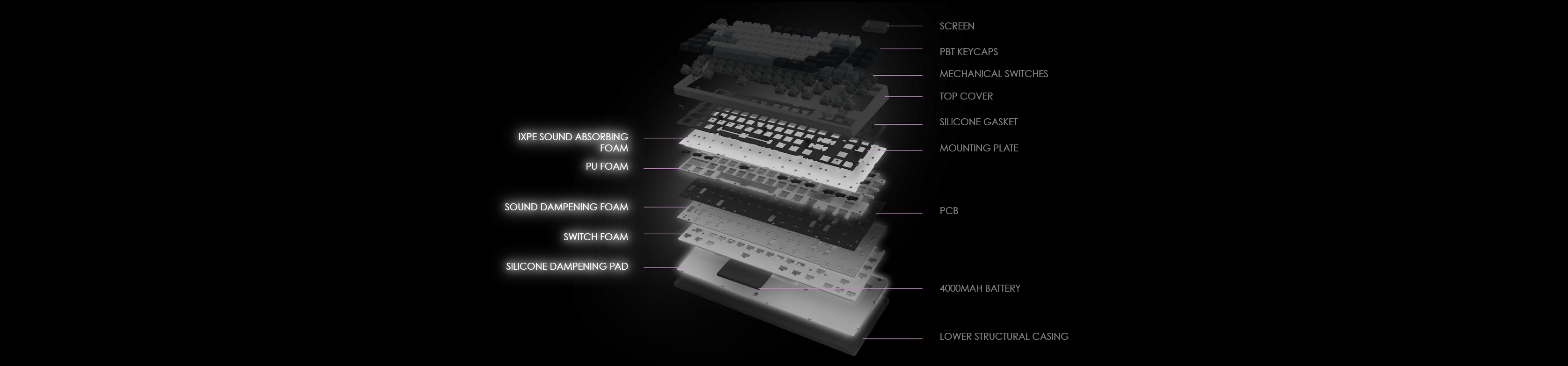 ساختار چندلایه Gasket و Sound-Dampening Foam برای حس تایپ نرم و لذتبخش