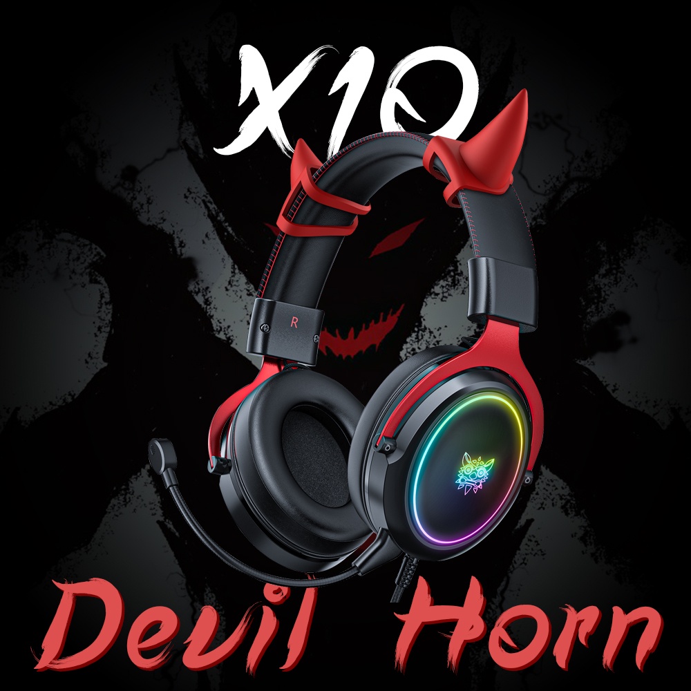هدست ONIKUMA X10 Devil همراه با دو عدد Devil Horn برای شخصیسازی ظاهر ارائه میشود. این شاخهای تزئینی به راحتی بر روی بالای هدست متصل میشوند و ظاهری خارقالعاده و منحصر به فرد به آن میبخشند.