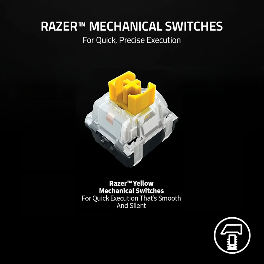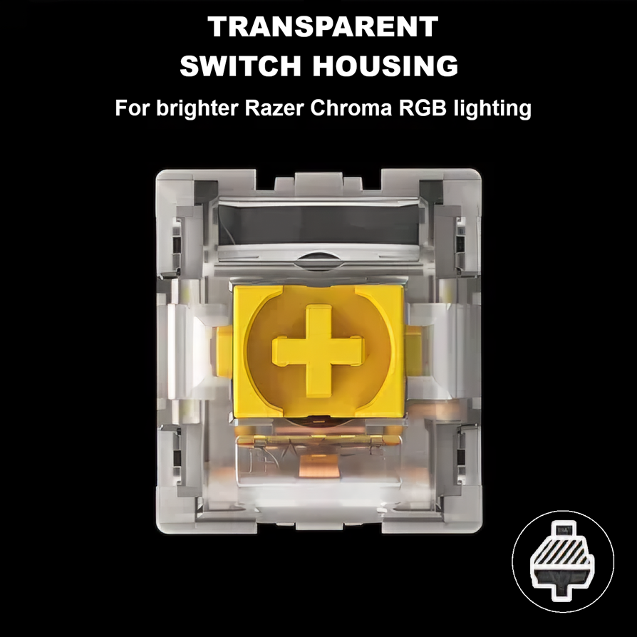 کیبورد RAZER BLACKWIDOW V3 MINI HYPERSPEED از RAZER YELLOW MECHANICAL SWITCHES استفاده میکند. این سوئیچها با طراحی خطی و بیصدا (LINEAR AND SILET)، حس تایپ نرم، با واکنش سریع را برای شما فراهم میکنند و صدای کلیک و ضربه را به حداقل میرسانند. این ویژگی برای گیمر هایی که در محیطهای مشترک بازی میکنند، یا استریمر هایی که نمیخواهند صدای کیبوردشان ضبط شود، ایدهآل است. این سوییچهای ساکت، تمرکز شما را در بازیها حفظ میکنند و در عین حال، به دلیل ماهیت مکانیکال، پاسخگویی بسیار سریع را تضمین میکنند. همچنین، این سوئیچها با دوام و طول عمر بالایی دارند و میتوانند سالها بدون مشکل به شما خدمت کنند.