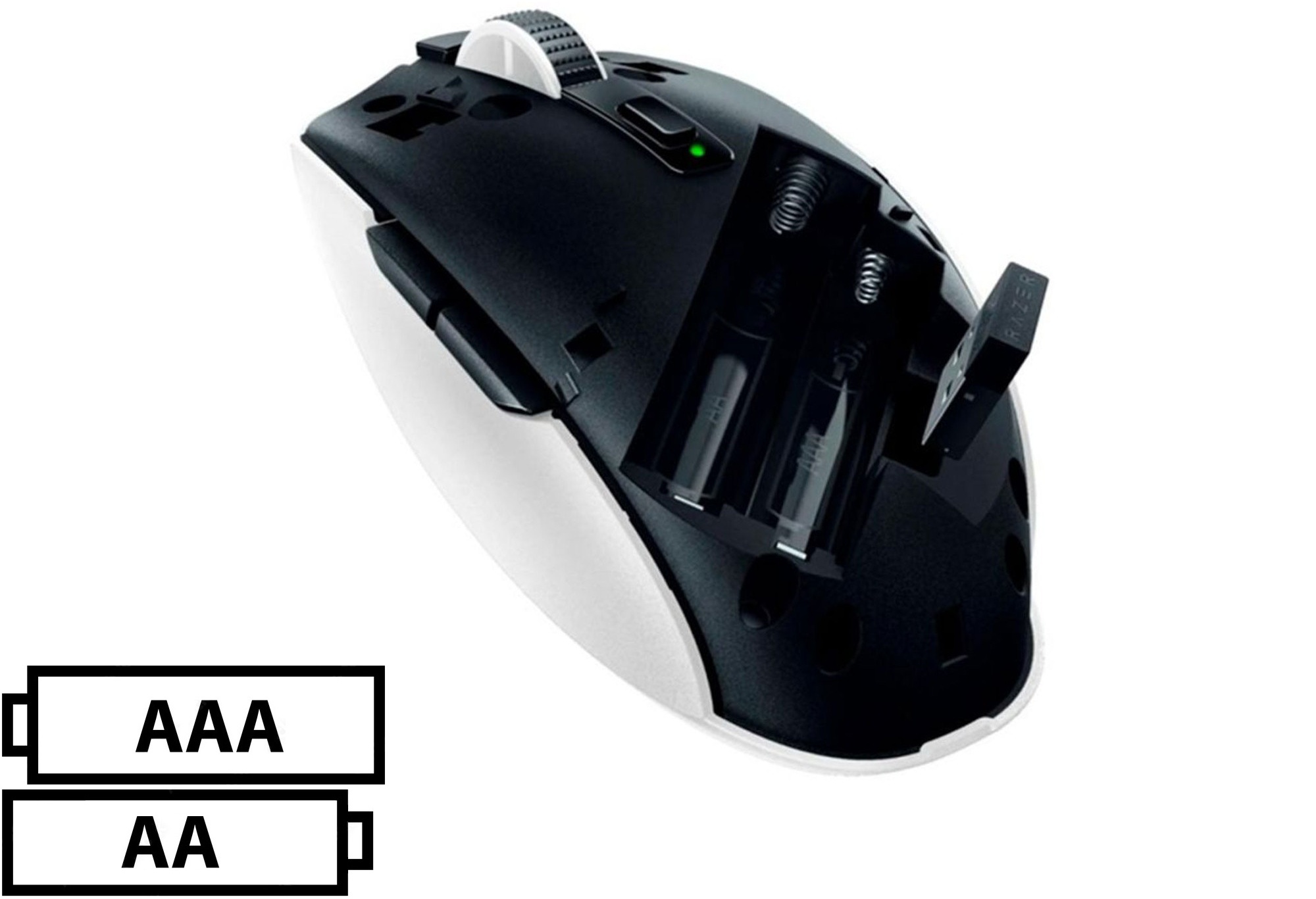 موس RAZER OROCHI V2 هم با باتری نوع AA (قلمی) و هم با باتری نوع AAA (نیم قلمی) کار میکند. شکاف باطری دوگانه که سازگار با دو نوع باتری است، امکان انتخاب میان گزینه های دوام طولانیتر باتری یا وزن سبکتر موس را فراهم میکند و همه این ها در موقعیتی بهینه برای توزیع وزن متعادل و تعلیق مطلوب موس قرار دارد. همانطور که قبلا اشاره شد، میتوانید موس را به دو روش بلوتوث و RAZER HYPERSPEED به سیستم خود متصل کنید. در حالت بلوتوث که برای کار کردن در نظر گرفته شده، یک باتری قلمی لیتیومی میتواند تا 950 ساعت استفاده را برای شما فراهم کند. در حالت HYPERSPEED، که به دلیل تأخیر بسیار ناچیز در اتصال، برای گیمینگ فوقالعاده است، همین باتری قادر است تا 425 ساعت شارژدهی داشته باشد.