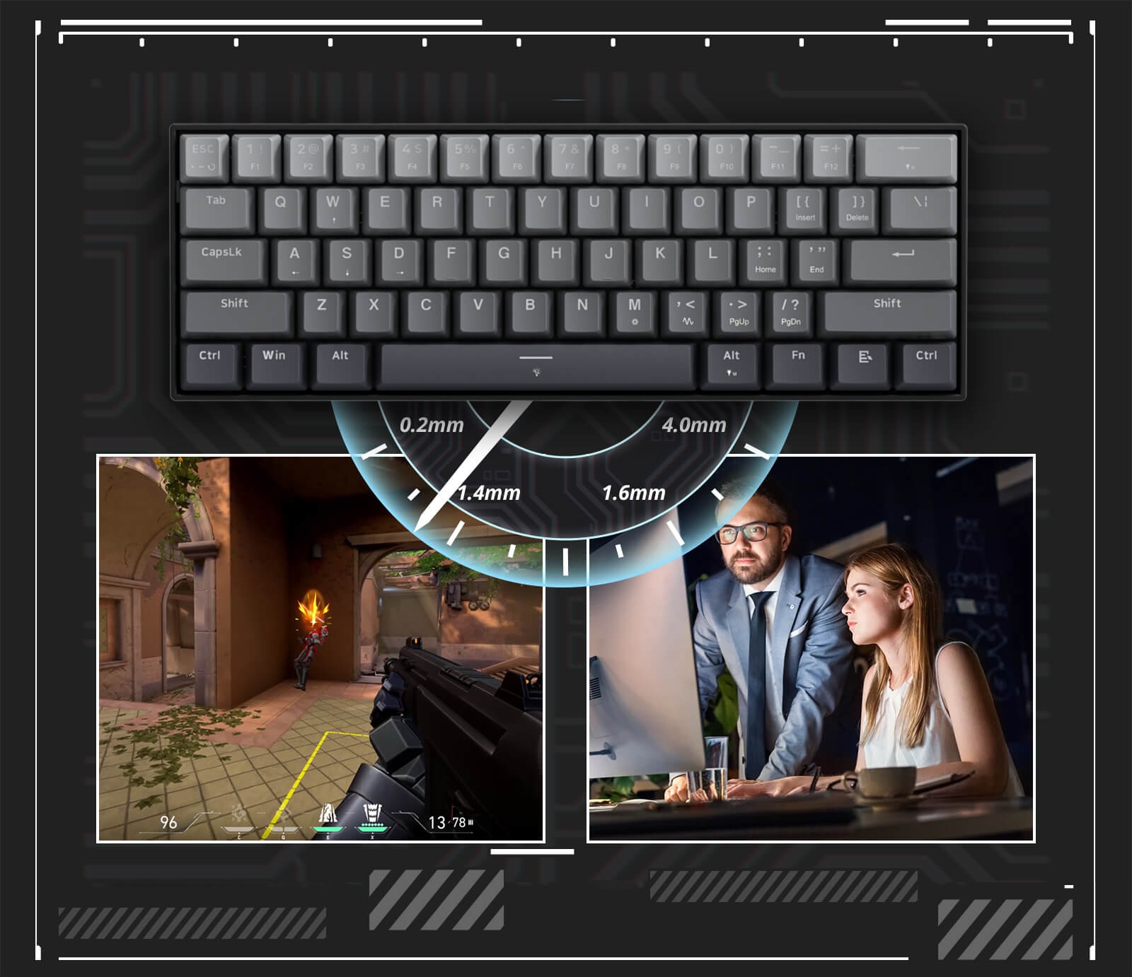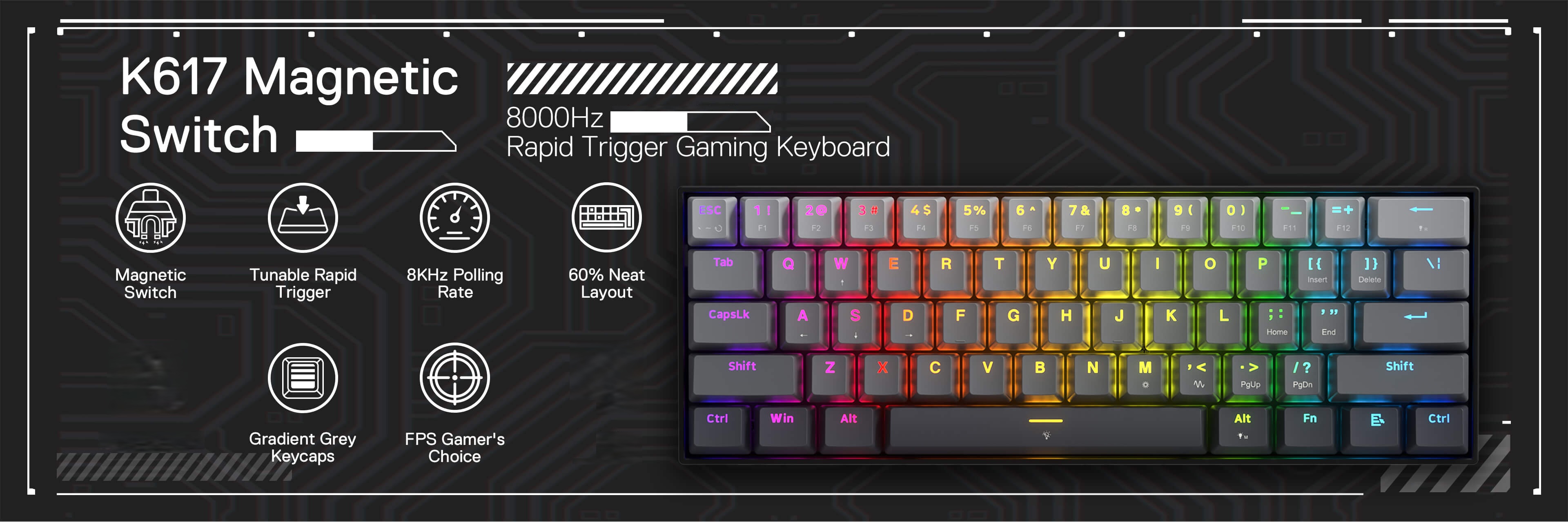 کیبورد ردراگون K617 FIZZ از سوئیچهای مغناطیسی استفاده میکند که برخلاف سوئیچهای مکانیکی سنتی، هیچگونه تاخیر فیزیکی در ورودی ندارند. این سوئیچها با 10 برابر سرعت بیشتر و طول عمر 2 برابری، به شما امکان میدهند تا با سرعت و دقت بیشتری به دستورات بازی واکنش نشان دهید و از رقبای خود پیشی بگیرید. این سوئیچها از نوع صورتی مگنتیک REDRAGON هستند که عملکرد و سرعت بی نظیری دارند. سوئیچهای مغناطیسی FIZZ با سرعت پاسخگویی فوقالعاده بالا، به شما امکان میدهند تا با سرعت و دقت بیشتری در بازیها واکنش نشان دهید. این کیبورد با نرخ نمونهبرداری 8000 هرتز، هر حرکت شما را با دقت و سرعت بینظیری ثبت میکند. همچنین، این تکنولوژی به K617 امکان ارائه ویژگیهای جذابی مانند نقاط فعالسازی سفارشی و Rapid Trigger را میدهد که واکنشپذیری کلیدها را بهبود میبخشند.