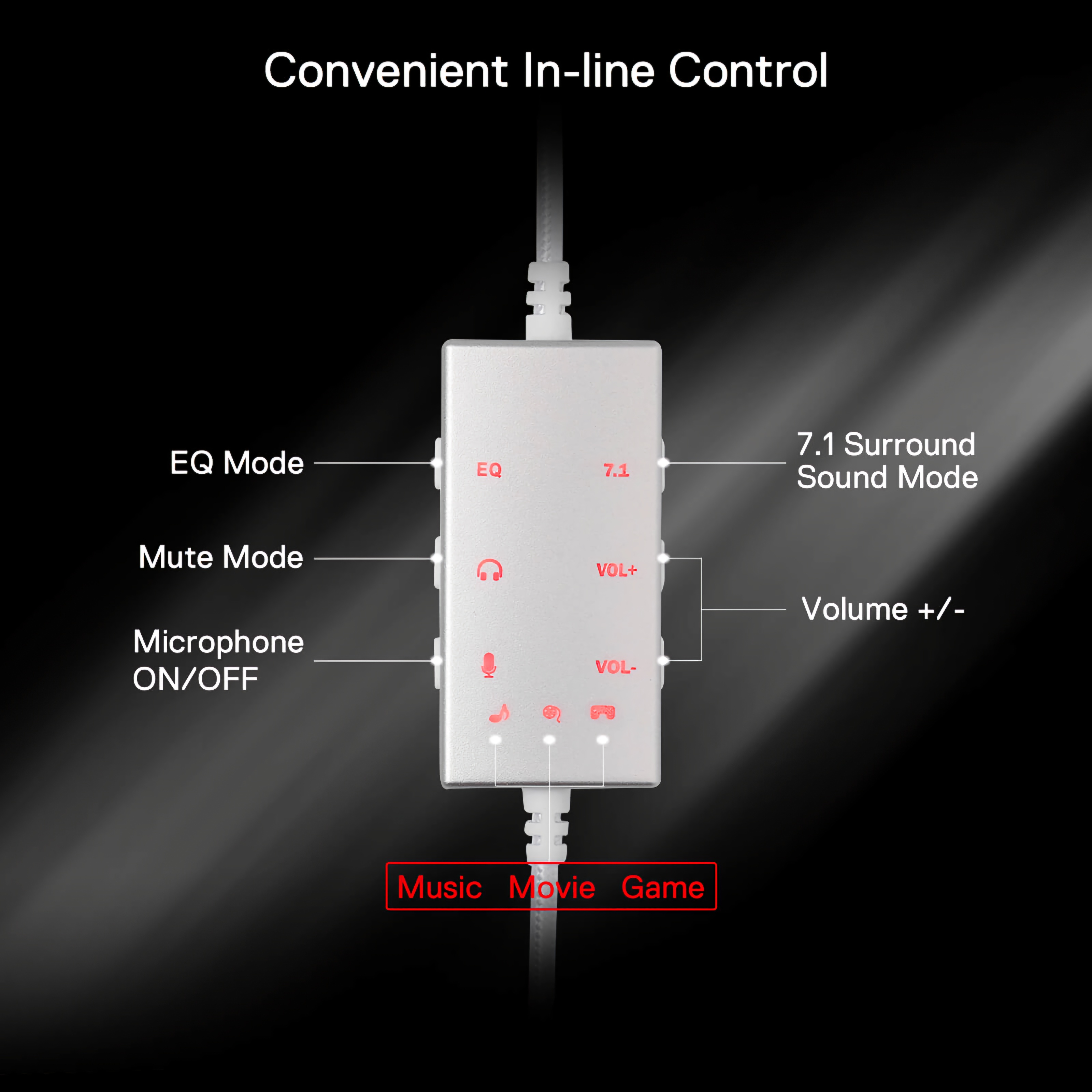 این هدست دارای کنترلهای درونخطی است که به شما امکان میدهد به راحتی بین سه حالت EQ برای صحنههای مختلف جابجا شوید، چه در حال بازی باشید، چه در حال گوش دادن به موسیقی یا تماشای فیلم. کنترلکننده حجم صدا و کلید قطع سریع میکروفون با آیکونهای روی هدست ، تنظیمات صوتی را بدون از دست دادن تمرکز برای شما آسان میکنند.