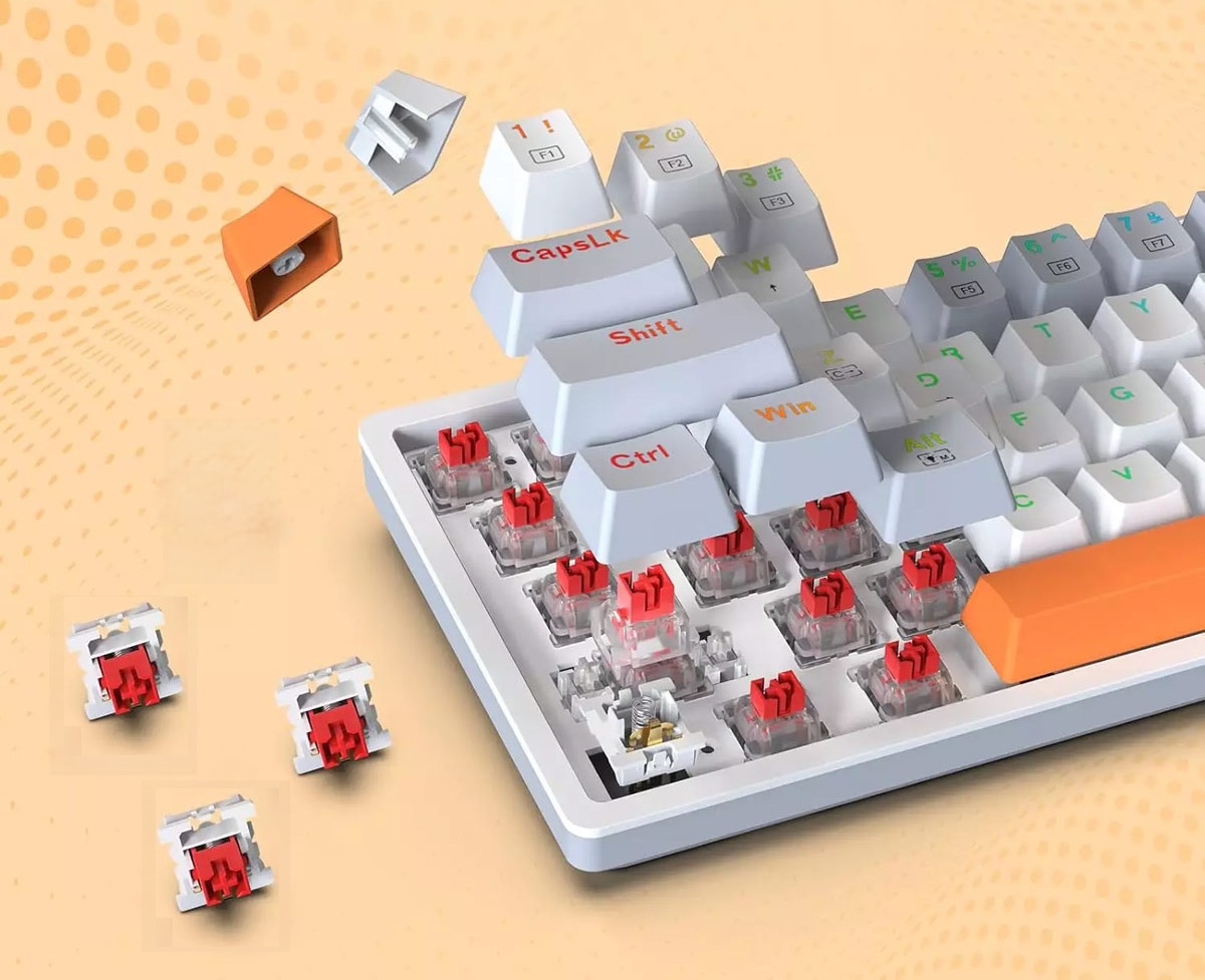 قلب تپنده یک کیبورد گیمینگ مکانیکال، سوئیچهای آن هستند. کیبورد K642 AKALI مجهز به سوئیچهای مکانیکال قرمز (Red Switch) است. این نوع سوئیچها به دلیل ماهیت Linear (خطی)، یکی از بهترین انتخابها برای گیمینگ سریع و حساس محسوب میشوند. سوئیچهای قرمز فاقد صدای "کلیک" بلند (مانند سوئیچهای آبی) و همچنین "برجستگی لمسی" (مانند سوئیچهای قهوهای) هستند. این ویژگی باعث میشود که تنها با پایین آمدن مستقیم کلید، فرمان ثبت شود.