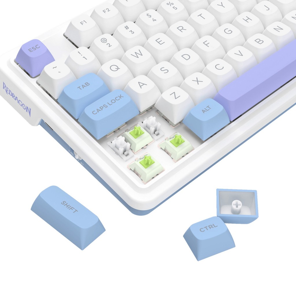 از نظر ظاهری، کیبورد گیمینگ REDRAGON K673 WBP UCAL MAX با ترکیب رنگ سفید، آبی و بنفش، یک جلوه بصری خاص و چشمنواز دارد. این ترکیب رنگ پویا و جذاب، نه تنها با نورپردازی RGB کیبورد بهخوبی هماهنگ میشود، بلکه میتواند ظاهر ستاپ شما را ارتقاء دهد. وزن مناسب این کیبورد، پایداری لازم را روی میز ایجاد میکند تا در طول بازیهای پرهیجان، کیبورد حرکت نکند و تمرکز شما حفظ شود. طراحی باکیفیت و مستحکم، عمر طولانی مدت این محصول را تضمین میکند.