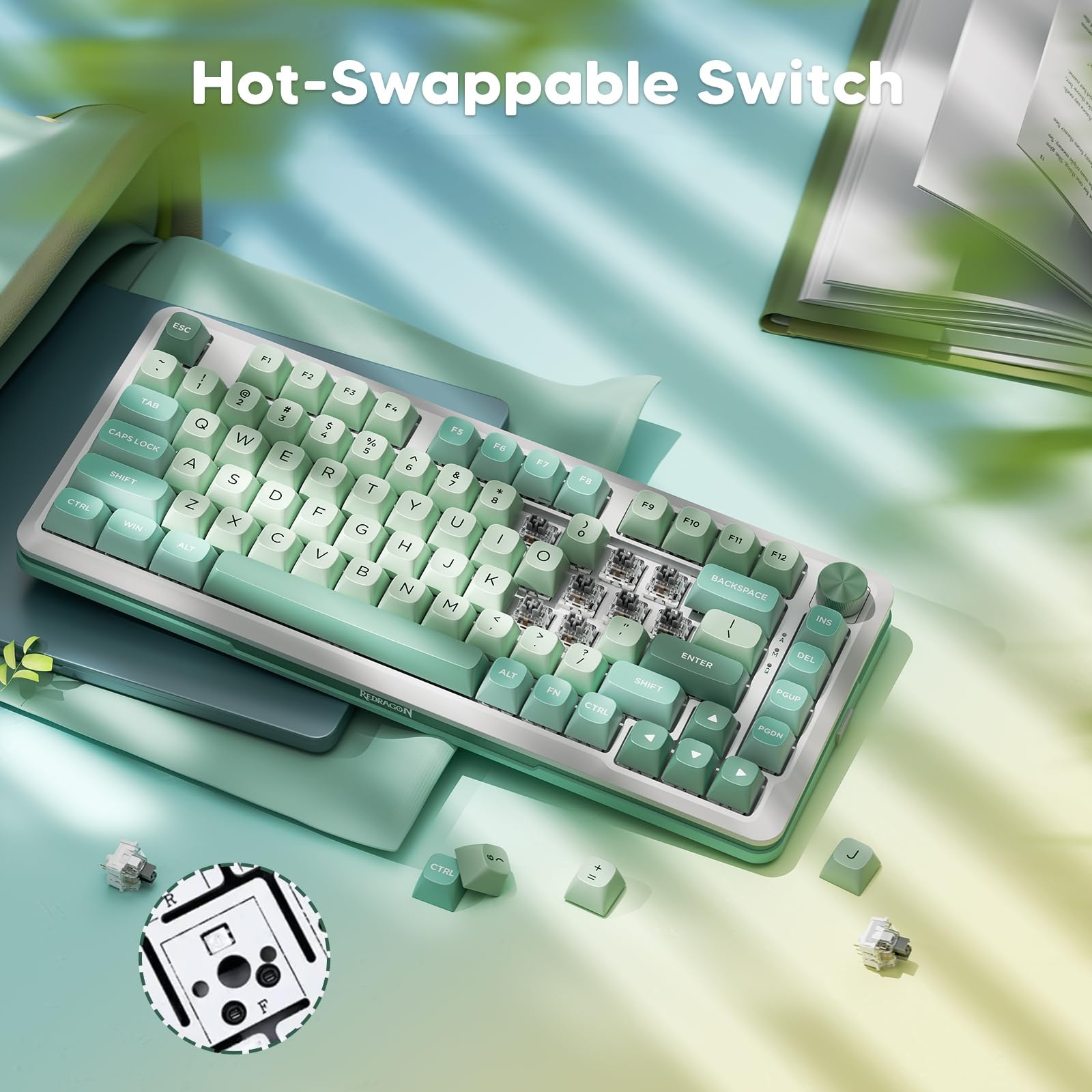 کیبورد REDRAGON CYRUS PRO با طراحی 75%و چیدمان بهینه، فضای بیشتری را روی میز کار شما آزاد میکند و در عین حال دسترسی آسان به تمام کلیدهای ضروری را فراهم میکند. این طراحی به ویژه برای گیمرهایی که به فضای بیشتر برای حرکت موس خود نیاز دارند، بسیار مهم است. علاوه بر این، کلیدهای تابع در بالای کیبورد قرار گرفتهاند و دیگر نیازی به استفاده از کلید FN برای دسترسی به آنها نیست.