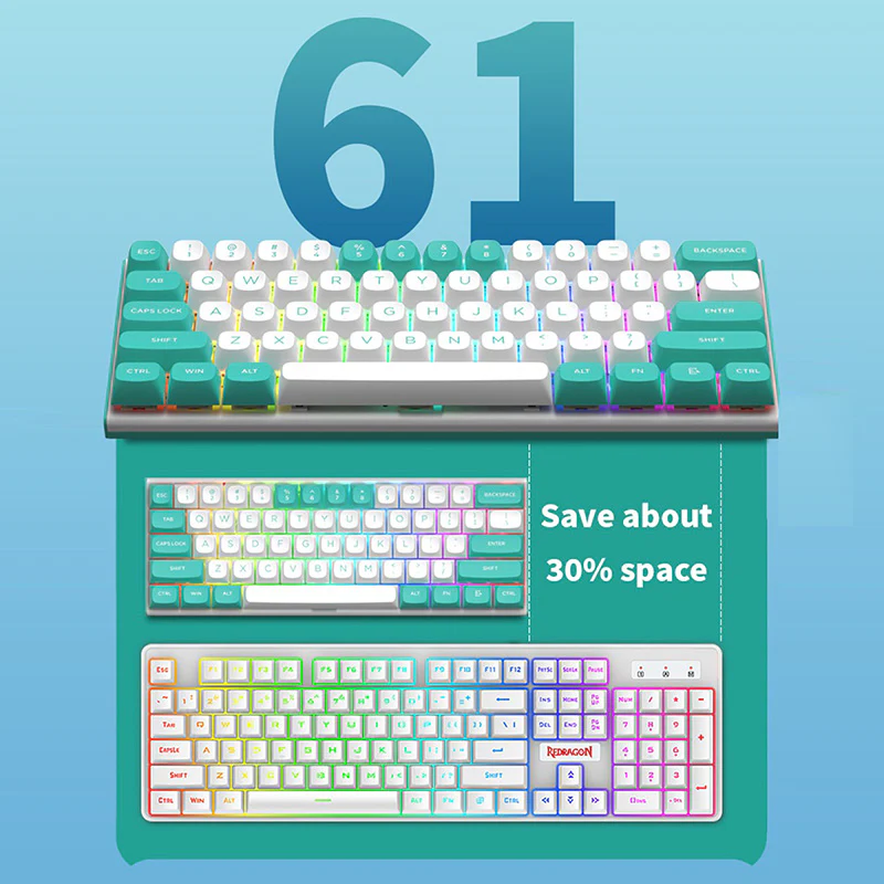 کیبورد گیمینگ ردراگون K683 WB FIDD با طراحی فشرده و رنگارنگ خود، یک انتخاب عالی برای گیمرهایی است که به دنبال کیبوردی کمحجم و زیبا هستند. رنگبندی جذاب ترکیبی از سفید و فیروزهای، ظاهری تازه و متفاوت به این کیبورد میبخشد که در مقایسه با طرحهای معمولی گیمینگ، چشمگیرتر است.