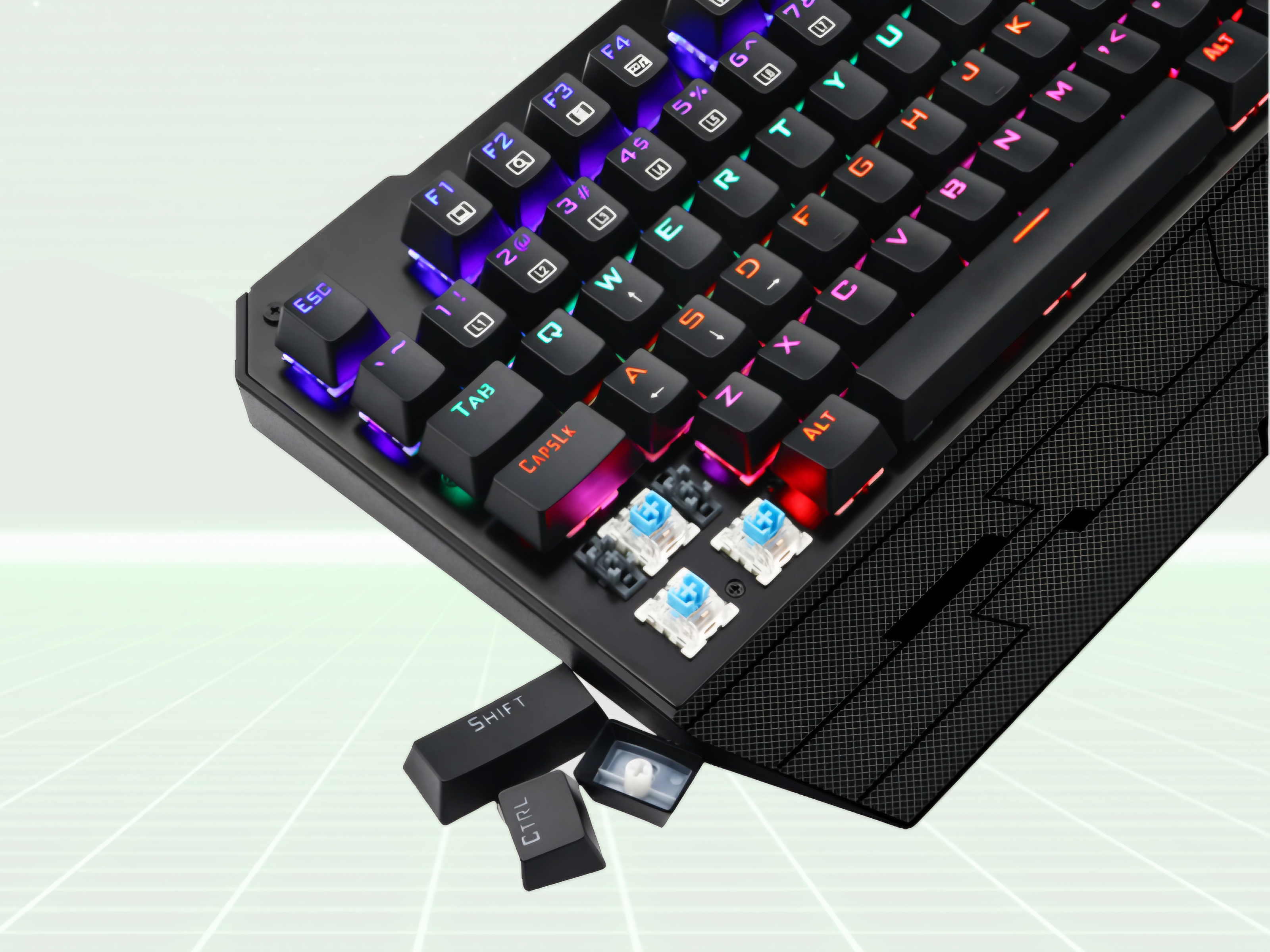 قلب تپنده این کیبورد، سوئیچهای مکانیکال آبی آن است که تفاوت فاحشی میان این محصول و کیبوردهای معمولی (ممبرین) ایجاد کردهاند. سوئیچهای مکانیکال به کار رفته در T-DAGGER BATTLESHIP T-TGK301 به گونهای طراحی شدهاند که با سرعت و دقت دستور را ثبت کرده و این سوئیچها با صدای کلیکی، بازخورد لمسی و شنیداری بسیار لذتبخشی را به کاربر منتقل میکنند. همچنین، این سوئیچها برای تایپ نیز بسیار مناسب هستند و تجربه تایپ راحت و صدای لذتبخشی را برای شما فراهم میکنند. طول عمر بالای این سوئیچها تضمین میکند که کلیدها پس از میلیونها بار فشردن، همچنان دقت و کیفیت اولیه خود را حفظ کنند. حس "کلیکی" و پاسخدهی سریع این کیبورد، لذت تجربه بازیهای اکشن و استراتژیک را به طرز چشمگیری ارتقا میدهد.