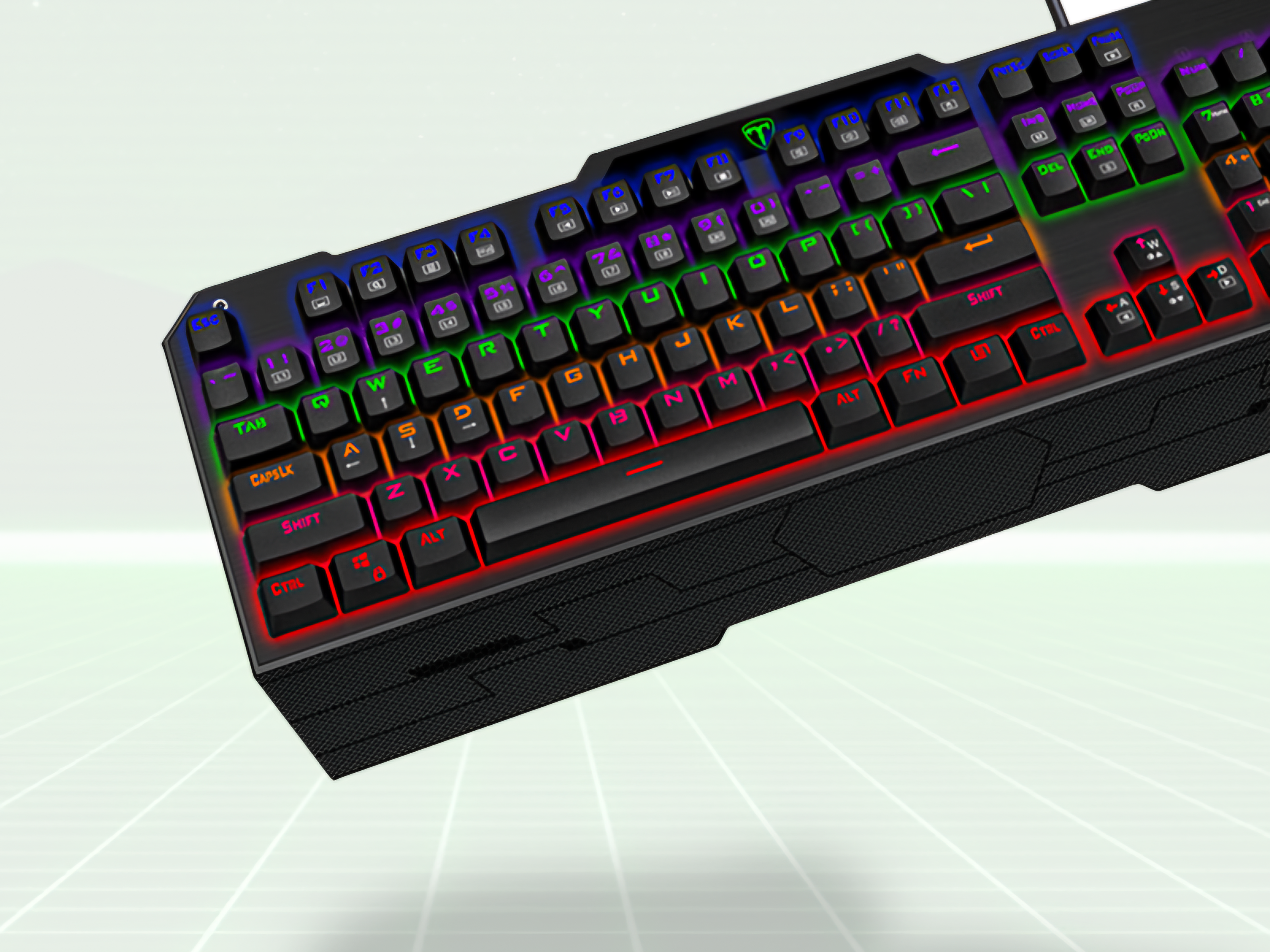 طراحی ظاهری کیبورد BATTLESHIP T-TGK301 همانطور که از نامش پیداست، حس استحکام و قدرت را القا میکند. پنل این کیبورد از آلیاژ آلومینیوم و دیگر قسمت های بدنه این کیبورد از پلاستیک فشرده و تقویتشده ساخته شده است که علاوه بر مقاومت در برابر ضربات احتمالی، در برابر اثر انگشت نیز مقاومت خوبی نشان میدهد. این محصول با داشتن 104 کلید استاندارد، یک کیبورد کامل محسوب میشود که تمامی بخشهای مورد نیاز کاربر را در خود جای داده است. ساختار کلیدها به گونهای است که با فاصله مناسب از یکدیگر قرار گرفتهاند تا علاوه بر راحتی و کاهش خطاهای تایپی، نظافت و نگهداری کیبورد نیز برای کاربر آسان باشد. وزن مناسب و شاسی مستحکم این مدل باعث میشود تا در حین بازیهای پرفشار و واکنشهای سریع، کیبورد بر روی میز جابهجا نشود و ثبات خود را حفظ کند.