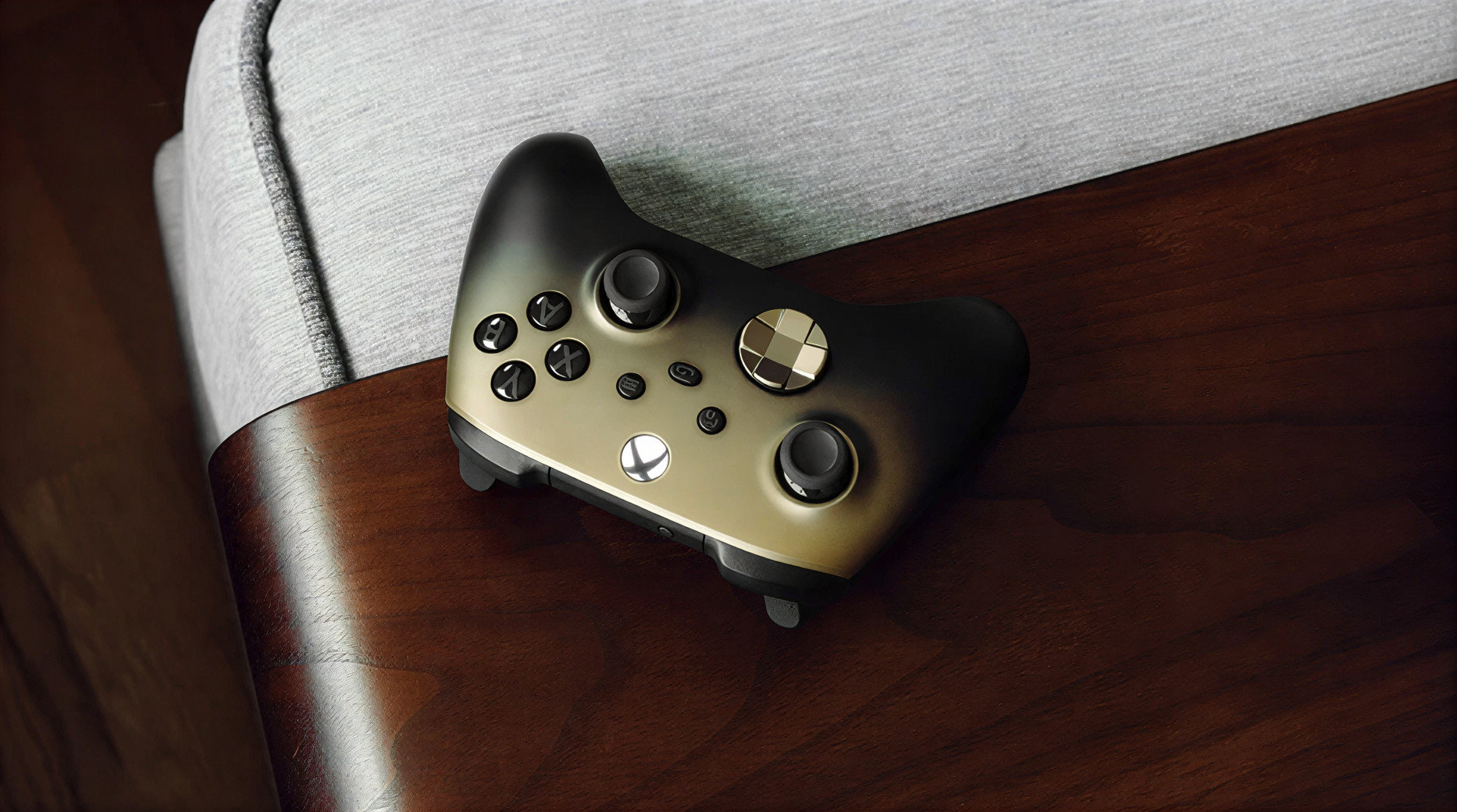 گیم پد XBOX طرح GOLD SHADOW SPECIAL EDITION با طراحی Gradient خیرهکنندهای طراحی شده که از طلایی درخشان و متالیک در بخش بالایی آغاز شده و به آرامی به مشکی عمیق و کربنی در بخش پایینی محو میشود. این ترکیب رنگی خاص باعث شده تا کنترلر در نور، طلایی بدرخشد و در سایه، به رنگ مشکی خود بازگردد، این گیم پد صرفاً یک کنترلر ساده نیست، بلکه یک قطعه هنری بسیار جذاب و لوکس است.
