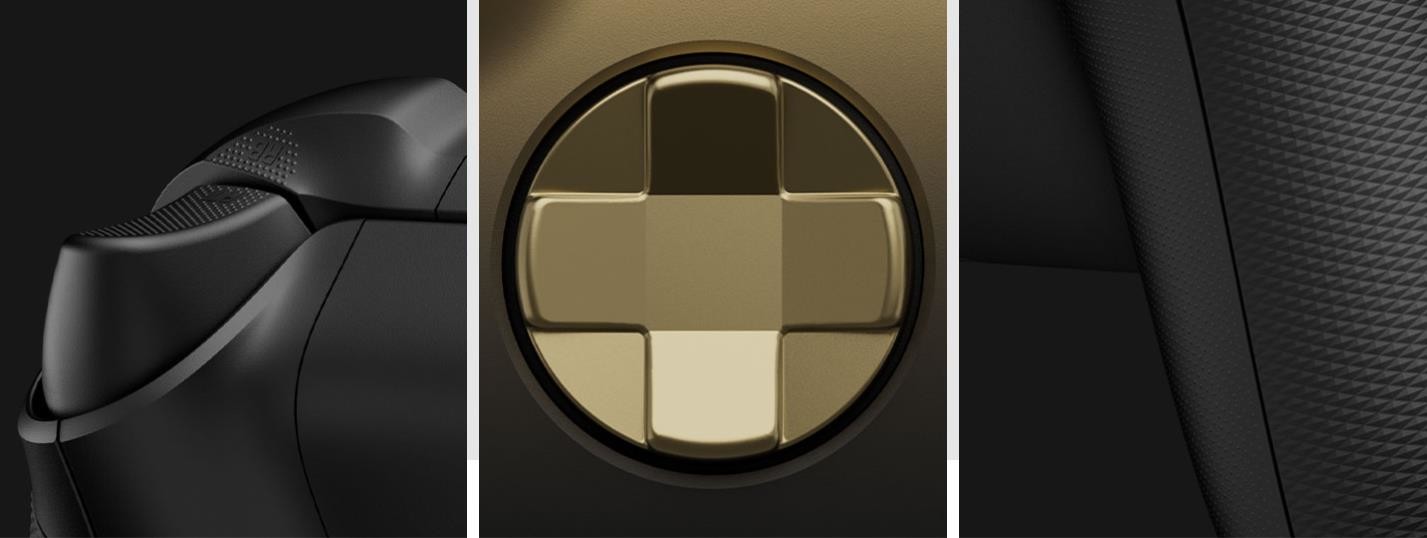 یکی از بارزترین ویژگیهای این گیم پد، صفحه جهتنمای (Gold Metallic D-Pad) به رنگ طلایی است. این دکمه از اکثر جهات مشابه دکمه D-Pad کنترلر الیت ایکس باکس است و فضای خالی بین چهار جهت اصلی با دکمههای پیوسته پر شده است تا کار کردن با آن راحتتر شود. این صفحه که به شکلی صیقلی و براق طراحی شده، نه تنها از نظر بصری جلوهای لوکس به کنترلر بخشیده، بلکه عملکردی دقیق و خوشایند دارد. همچنین، دکمههای ماشهای این کنترلر دارای بافتی نسبتا زبر هستند که باعث کاهش تعرق و کنترل بیشتر و انتقال لرزش بهتر میشود. دکمههای ماشهای نیز نسبت به نسل قبلی، بهبود یافتهاند و فشار دادن آنها بهتر احساس میشود.